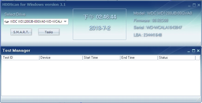 HDDScan 是一款免费且小巧的硬盘检测工具,它主要可以让我们用来检测我们的硬盘是否有坏轨,我们可以自订检测试的每一区块大小,并且显示出每一区块的读取时间,同时还可以显示出读取时的速度。