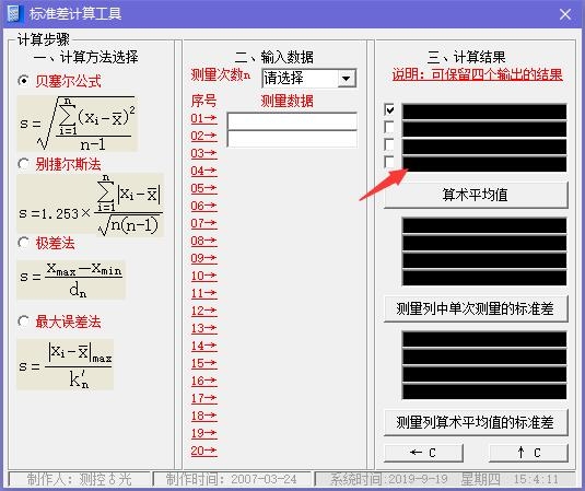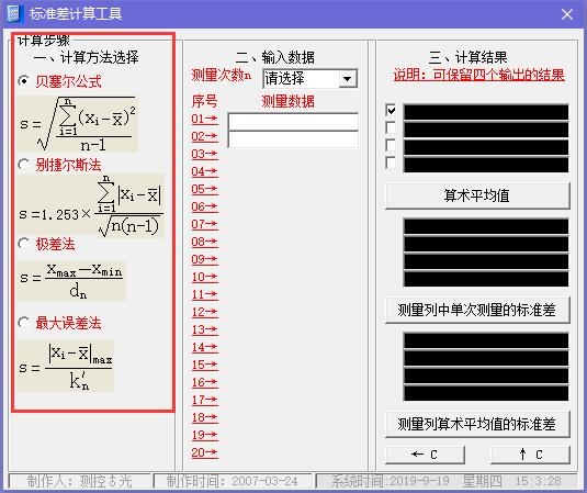 1、支持计算方法的选择:贝塞尔公式、别尔捷公式、极差法、最大误差法