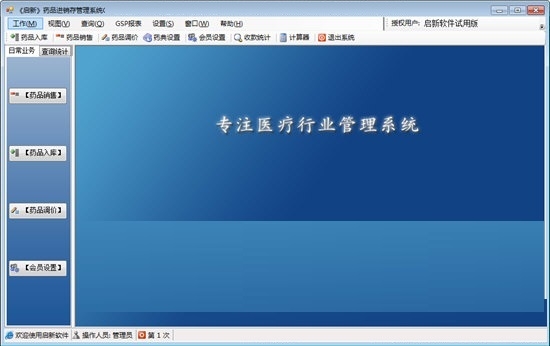 启新药店进销存管理系统电脑版是款界面美观大方,容易上手的药店进销存管理工具,启新药店进销存管理系统电脑版采用菜单式与可选导航模式,方便且可通过快捷键进行控制操作,方便快捷。启新药店进销存管理系统设计相当专业,且该软件是专为药店、药品批发零售商、医院药房量身定制,简单易用。