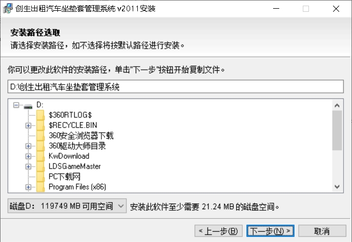 1、在PC下载网下载创生出租汽车坐垫套管理系统最新版压缩包,然后进行解压,得到exe程序,双击该程序,点击下一步