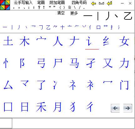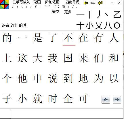 它具有笔画与手写输入功能的纯鼠标操作的输入法,除了可用五个基本笔画横竖撇点折输入。