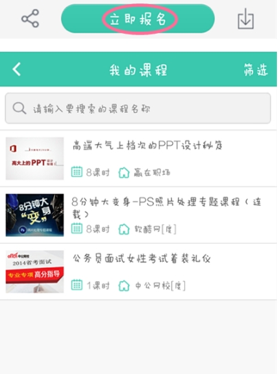 4.在“课程详情”下点击“立即报名”报名课程。已经报名的课程可以在”我的传课“下查看