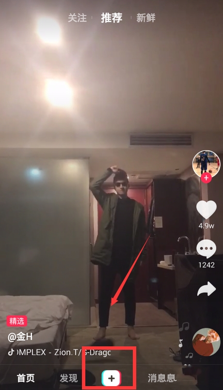 再进入抖音短视频,点击页面中间的“+”,先登录抖音短视频,才可以录制抖音短视频。