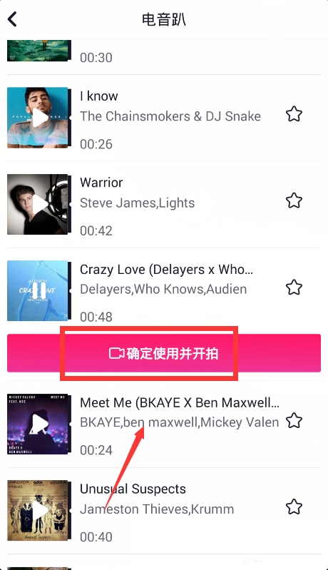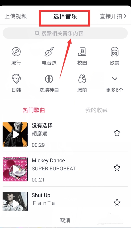 再“选择音乐”这一项,选择你想要录制抖音短视频的音乐。