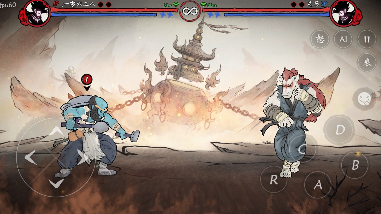 这是一款以西游为题材的格斗游戏,水墨画风非常漂亮;手感还不错,连招设置较为丰富,用到了很多方向键和不同攻击键的结合;西游剧情引入其中,并且模式多样,可以与玩家PVP拼个高下,也可以过剧情与妖魔鬼怪硬刚。