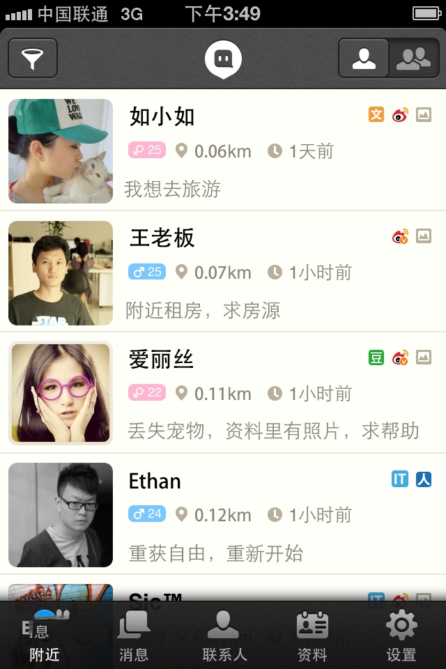 5、附近的人/群组:发现你身边有趣的人,加入你周围有趣的群组