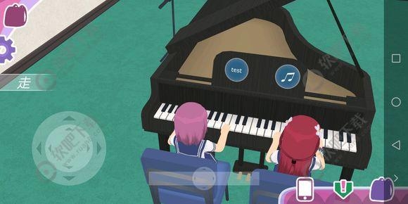 3、进入教室后靠近钢琴,在钢琴的附近点击游戏界面右下角坐下的功能键,点击之后角色会与女友一起坐在钢琴前面,之后点击钢琴前面的音乐标志即可开始弹钢琴。