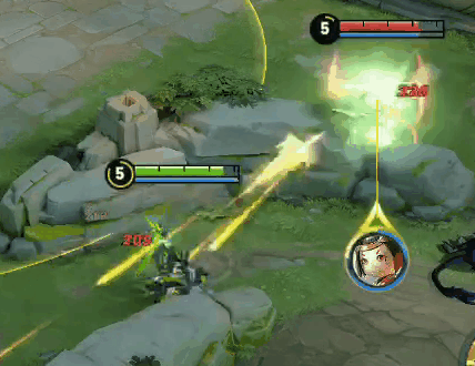 首先,我们先说最基本的技能使用。孙尚香的普攻是有一定前摇的,这在攻速不明显的初期比较明显。但是在前期,我们可以利用技能的施放来强制取消普攻前摇,比如2技能后接普攻,这个普攻是没有攻击前摇的。