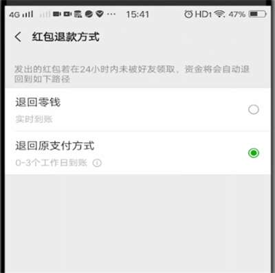 3.点击红包退款方式,选择退回零钱或者退回原支付方式即可