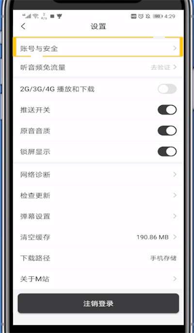 4、点击账号与安全