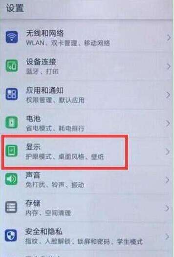 2、进入设置菜单后,找到并点击打开【显示】,