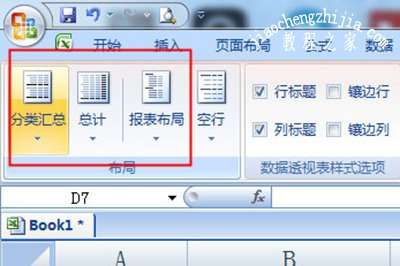 之后切换到上方【设计】选项卡,在【分类汇总】中选择不显示分类汇总,在【总计】中选择对行列的禁用,【报表布局】中选择以表格形式显示。