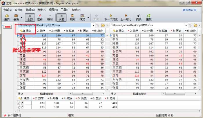 Beyond Compare表格比较默认主关键字的详细操作步骤