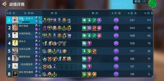 最后看下这局的两个阵容可以发现,我棋子的价值真的太低了,而且也没有升到10人口,主要原因是审判前期太强势了,压榨血量。