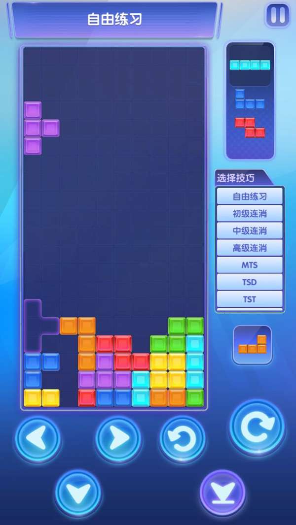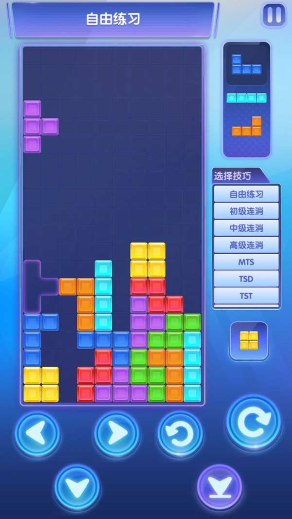 将第二个T块旋成这样然后加速下降下到下面后再连按两下左旋就ok了。这是运用了踢墙和高级训练的TST。只要右面五行叠满,没有空隙,就能稳定11行垃圾行打出