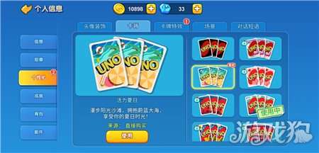 当然啦~在《一起优诺》的欢乐世界里,也可以轻松的享受夏日的快乐哦~“活力夏日”卡背你值得拥有!在“个人信息-个性化-卡背”中找到这款卡背,只需1000金币,就可以获得漫步阳光沙滩、拥抱蔚蓝大海的快乐啦!行动起来吧~