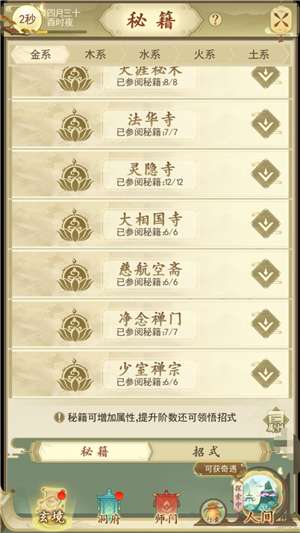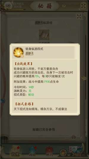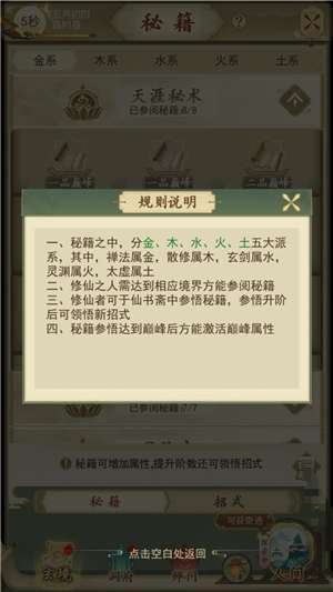 另外给秘籍升级增加属性值,而且前期我们会遇到升级多少次秘籍的任务,而且秘籍的升级的上线是由仙书斋的等级限制。所以我们前期还是升级所有秘籍。