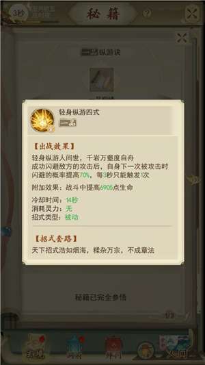 我们需要注意的第二点是:我们的招式是由秘籍参悟获得的,也就是说我们必须要在前期,培养几个核心的秘籍才能在后期打副本。
