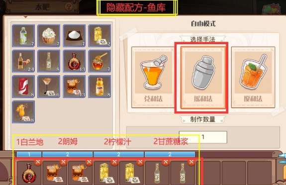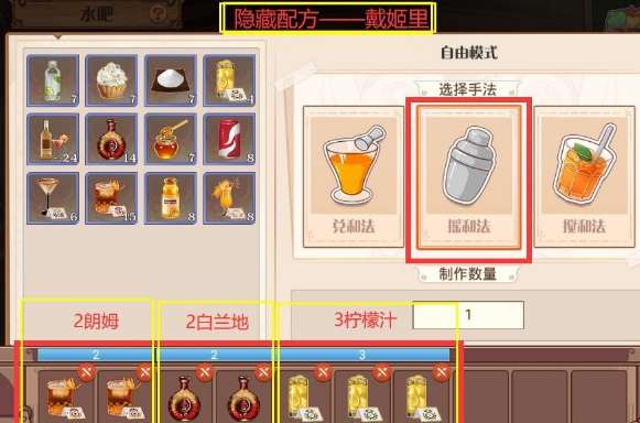 除了以上部分,5级水吧还解锁了自由调制功能,目前试出了2款隐藏配方