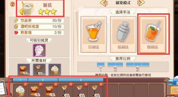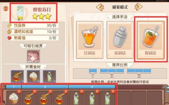 2. 一定要按上方食材配方从左到右固定顺序放置材料,个别饮品的系统食材顺序会误导,比如5级饮品-蜂蜜苏打、脏蕉!