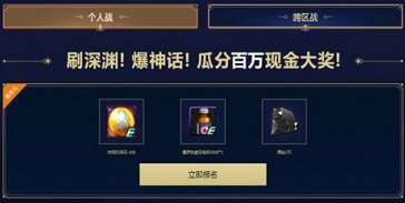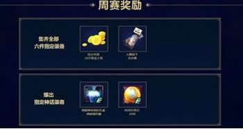 3.个人战以周为单位结算,根据每周爆出指定装备的件数可获得不同的奖励,爆出所有指定装备(6件)的勇士可参与瓜分每周20万元的现金大奖。每周指定装备在赛事启动直播中随机抽出。