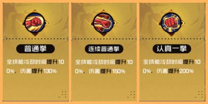 农夫三拳必选:普通拳、连续普通拳、认真一拳(最好是选三个,两个也行,玩三拳系列就是放弃技能,纯靠普通攻击锤了,基本只能放一次技能,一个技能冷却时间一分多)