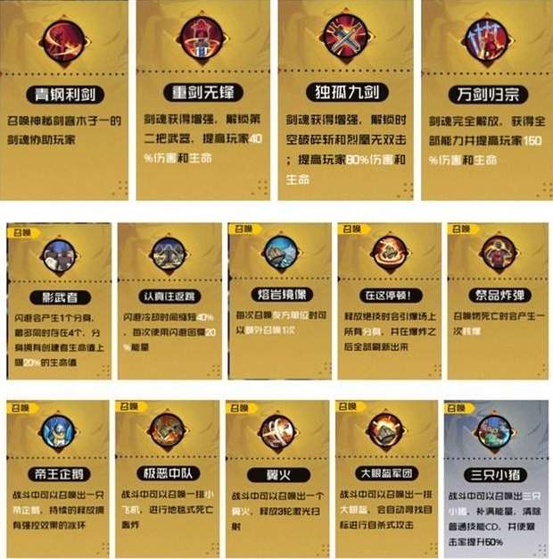 独孤九剑系列:青钢利剑、重剑无锋、独孤九剑、万剑归宗、熔岩镜像(召唤剑魂,一剑一个)