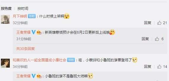 就在今天官方发布的一个微博下,有网友问了官博什么时候上线蒙恬,而官博也回复在6月2号更新后上线,所以6.2号上线基本稳了,小编还是非常期待这个新英雄的。