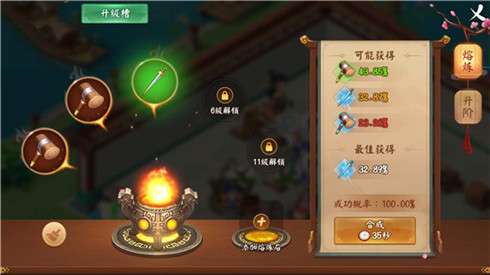 前面把话说的这么满,万一事实打脸岂不是很尴尬?所以,我还是亲自来实验一波。首先将3件白装投入熔炉鼎,好像没有那么多,不过问题不大。想我柠檬弟也是有身份的人,身上白装不多可以理解,就用一件绿装代替吧。刚把装备放置完毕,在右侧就出现了醒目的获得装备概率与打造概率,实在是良心。当然此刻欧皇附体的柠檬弟,义无反顾的点击了合成,接下来让我们耐心等待34秒,接下来就是见证奇迹的时刻。