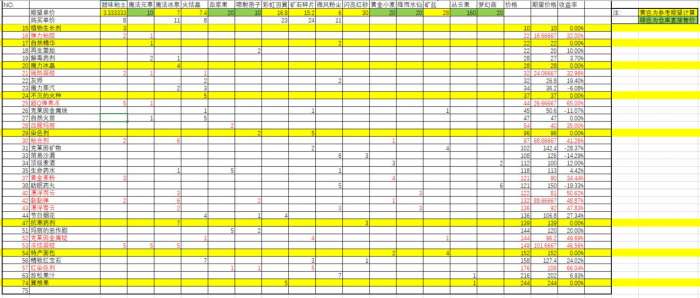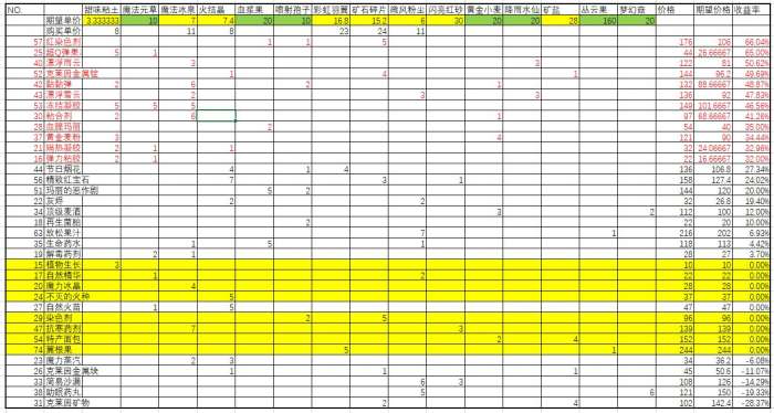 2、无售卖价的以单一材料合成品计算,如土,冰泉,火晶;