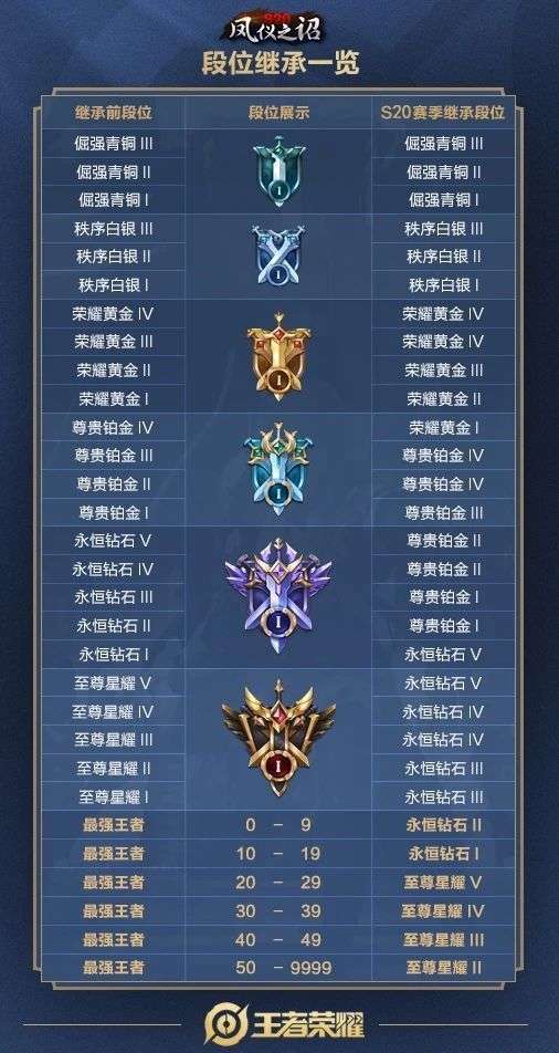 王者荣耀S20赛季段位怎么继承,大家也都知道王者荣耀游戏中的段位机制,并不会因为赛季的更新而全部清零,而是在进行一定的掉落分段,S19赛季即将就也到达了尾声,不少小伙伴也关心着S20赛季凤仪之诏的段位,下面和小编一起来看看王者荣耀S20赛季段位继承详解。