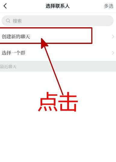 5、之后在选择联系人的界面,点击“创建一个新聊天”。