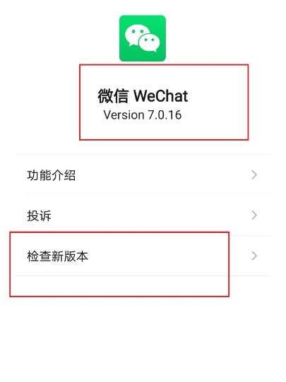 在点击进入关于微信功能,进入后检测微信版本是否为最新版本,详情如下;