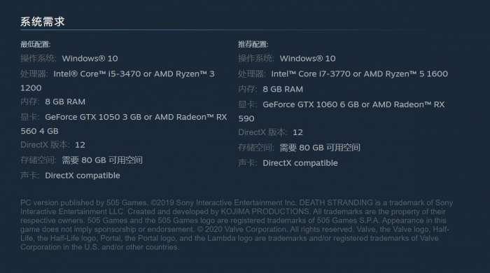 小岛工作室在7月1日正式公布了《死亡搁浅》PC版本的配置要求,以及Steam版、Epic版分别也开始了预售,以下我们来看下死亡搁浅PC版本电脑配置要求介绍。
