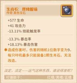 愿赌服输的各项属性范围:生命(-600~600),攻击力(-90~90),技能触发率(-20~20),暴击率(-25~25),暴击伤害(-75~75),传奇特效值(1~9)。