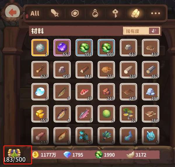咔叽的背包最多可以用钻石扩展到500格。100钻5个格子。萌新们根据自己的情况开背包。早开早享受,不开忒难受——到后面会发现,一个副本下来,背包总是满的,每次下完图清背包真是困难!而且,不管多大的背包,我都不够用啊!!!