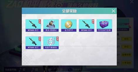 1、片段奖励:每成功合成1个片段,可直接获得该片段对应的奖励,包含:M16A4夜灯(3天)、喷涂一我是DJ*1、金币*717, M16A4夜灯(30天)、717空投节宝箱。