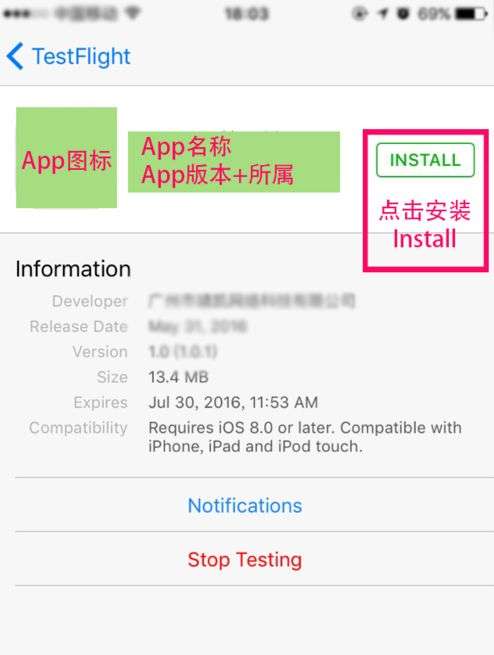 (翻译:到App Store下载TestFlight)