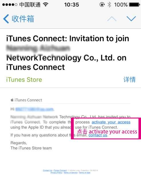 1、接受邀请iTunes Connect打开邮箱邮件(电脑和手机操作都可以);
