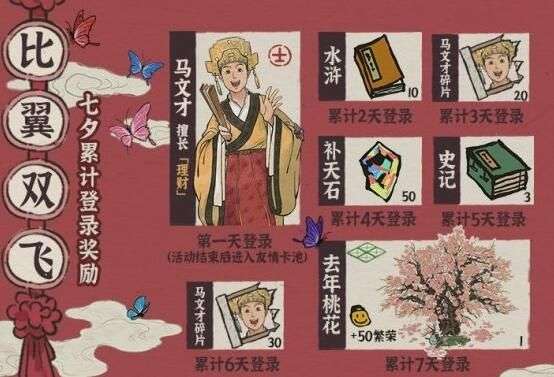 七夕比翼双飞登陆第一天便可获得马文才,获得时间:8月21日13:00—8月30日23:59。