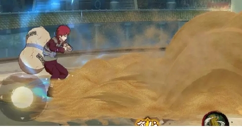 技能描述:我爱罗用查克拉操控沙子攻击对方,可以释放两次。第 一段用沙化为手臂攻击对方;第 二段将场上残留的沙子吸收回自己的葫芦里并对敌人造成伤害。