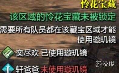 1、想要开启这个怜花宝藏,我们首先要组一个队伍,没有队伍的话是不能开启这个宝藏的哦,而且值得一提的是,我们的队伍要保证含有一个游侠和4个队友,还有一点就是队员都带上璇玑镜,没有游侠以及璇玑镜的话,也是不能开这个怜花宝藏的。