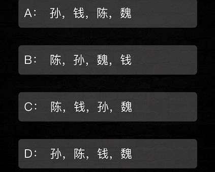 死者顺序内容:A:孙钱陈魏、B:陈孙魏钱、C:陈钱孙魏、D:孙陈钱魏