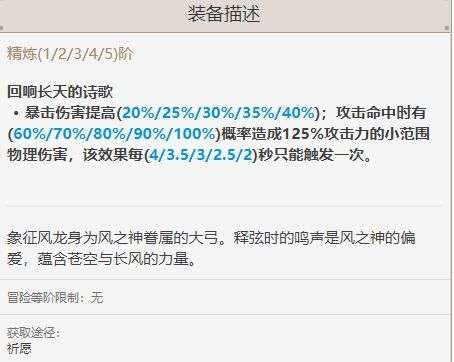 天空之翼:副属性暴击+自带爆伤,已经是弓类武器的老大哥了,基本上弓系角色都能带,泛用性高,