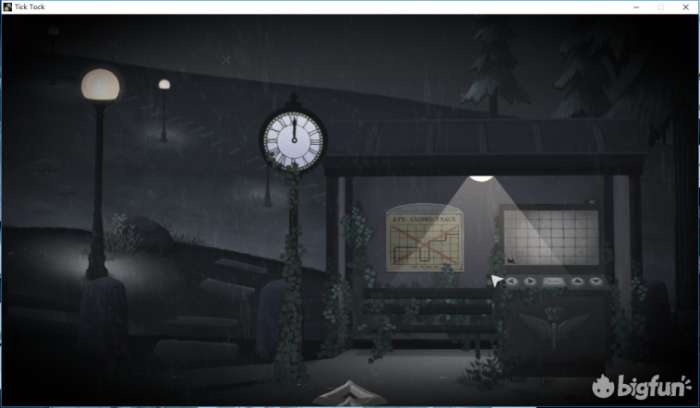 要素:钟和火车路线图。通过观察可以发现,火车的那个机器少了一个按钮→,所以理应先去找这个按钮。不过这个游戏的解谜顺序并没有太大影响,所以我们按照场景从左到右依次来解。