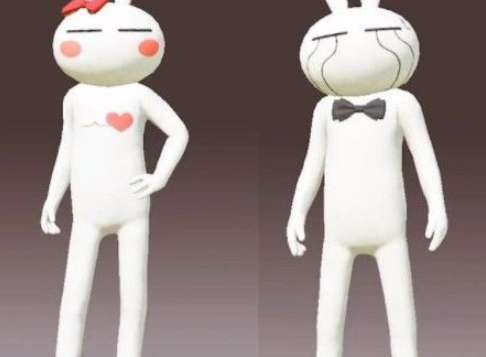 首先给大家介绍套装,此套装分为男套和女套,套装名叫“动感兔斯基人偶服”,这款套装全部都是白色,但是男和女套还是有一点小差别,女款的衣服上有个小红心,头上有个蝴蝶结,而男款则是衣服上有个黑色蝴蝶结,男款较为突出的是表情是“流泪”的。这套装给人的感觉就是一种简单,呆萌的感觉,说实话,小编觉得这皮肤还是不错的,特别是男款。