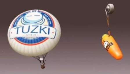 下面就继续来看看标配吧。此次的标配依然是背包,头盔,降落伞,挂件,还有神器平底锅。在此次的标配中,最亮眼的就是背包和平底锅,背包此次光子做的不错,简单的白色配*上呆萌的兔子造型,着实可爱,而平底锅依然是兔子的表情造型,这样一套皮肤在游戏内看到,着实让人又爱又恨。依次是头盔和降落伞,这两样没啥看点,降落伞上还是有TUZKI的字样,而挂件就是一个黄色胡萝卜,大概是因为兔子喜欢吃胡萝卜的原因,挂件才这样设计。