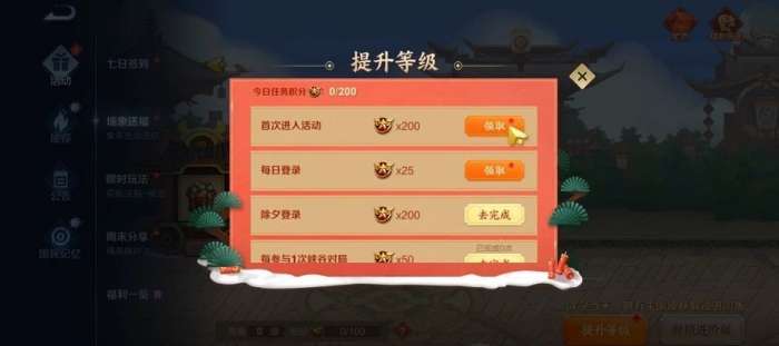 3、每100积分可以提升1级,通过任务每日最多获得200积分
