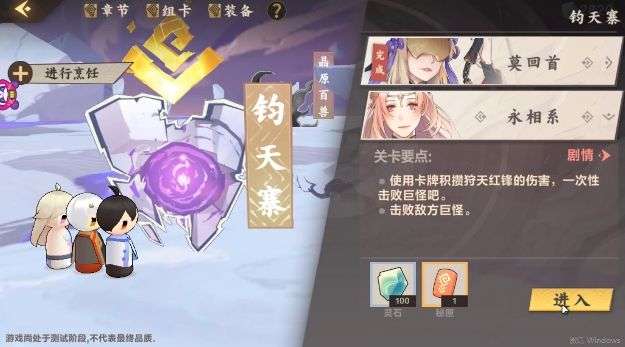 本关幻梦双子会协助玩家战斗,贤童会帮我们加灵力,仙姬会对主将造成伤害,并且当灵力到达6时,他们的攻击力会提高。但是换句话说,在前两个回合他们是没有攻击力的,也就是不会攻击,还占两个格子。因此我们之前用的金协战打法要稍微修改一下,不能用多个部属刷协战了,建议像《难舍离》中对卡组进行修改,将没用的低费卡删除一部分。第一回合我们最好先下剑圣,然后贴上耀灵化身,这面板足以打穿一路,并且剑圣的连击刷精兵协战要比放两个人好,毕竟格子本来就不多了,等过两个回合双子有攻击力之后再养协战会更快一点。