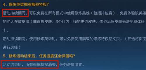 首先修炼皮肤是修炼英雄的特权之一,通过上图的官方描述来看,【在活动持续期间】才能免费体验该英雄的绝大多数皮肤,意思是修炼皮肤存在试用的时间限制,激活后并不会永久存在。
